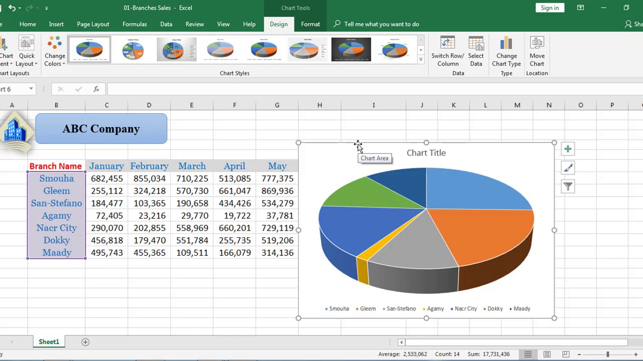 19 Ms Excel Part 19 Charts 3 Pie Chartتعلم برنامج الأكسل Youtube
