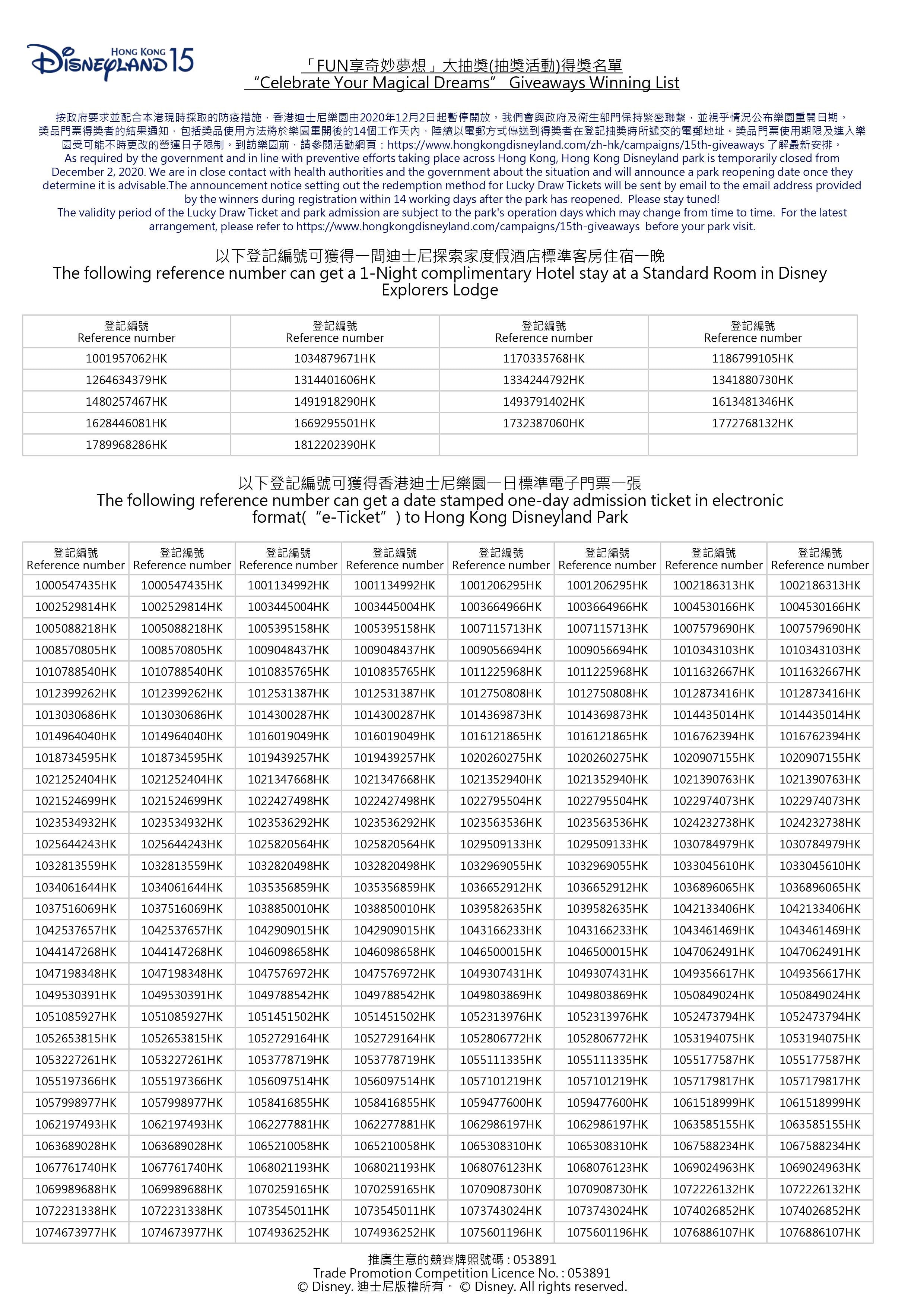 Hk disneyland 抽獎結果. 迪士尼抽獎結果名單公佈領獎方法使用期限5大須知做錯或DQ 香港01迪士尼公布Fun享奇妙夢想抽獎結果即睇得獎名單及換領須知 頭條日報 Headline Daily迪士尼抽獎結果迪士尼公布FUN享奇妙夢想得獎名單即睇自己有無中獎附名單連結 - 香港經濟日報- 理財. For prizes draw dates and Terms Conditions please see below. 第一次抽獎 2021年7月8日 第二次抽獎 2021年7月22日 第三次抽獎 2021年8月5日 得獎者請留意.